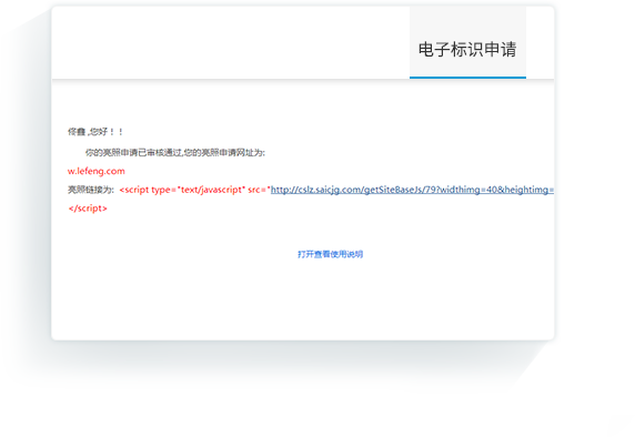 • 可按照郵件的使用說明,將電子標識添加到網(wǎng)站首頁下方的醒目位置